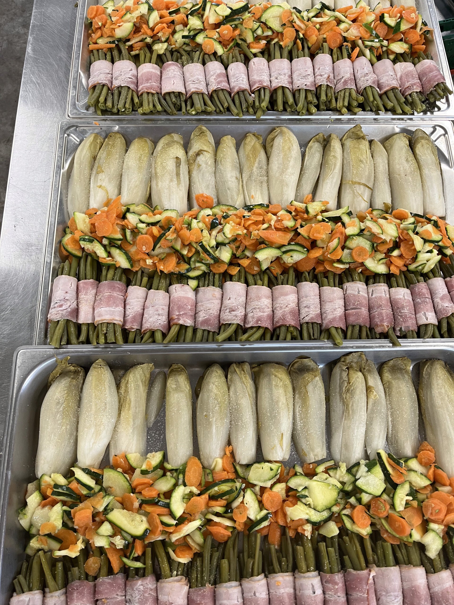 Wij voorzien, witloof, boontjes in spek, bloemkool met witte saus en een mix van wortel en courgette